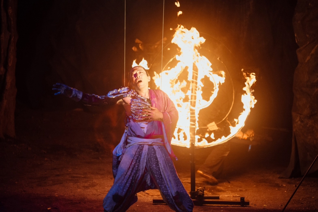 時は南北朝、楠正成と呼ばれた悪党(鉄男)を巡る姉妹と母の物語。山賊や芸能集団をも巻き込んだ一大叙事詩。花園境内の土の上で繰り広げられるこれぞ野外劇!野外テント公演の臨場感あふれる舞台を高画質上映でお楽しみください。