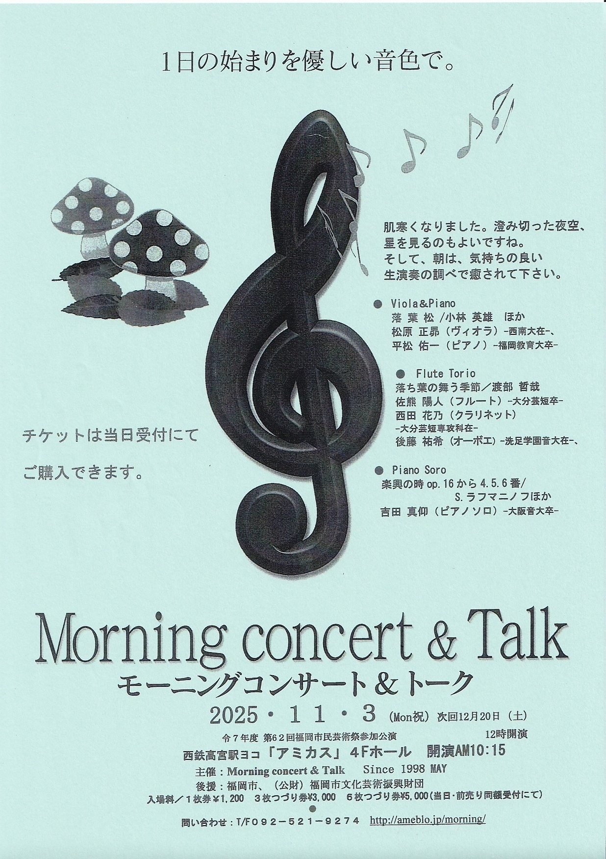 モーニングコンサート&トーク takashimas_morning985@yahoo.co.jp TEL 092-521-9274 / FAX 092-521-9274 |