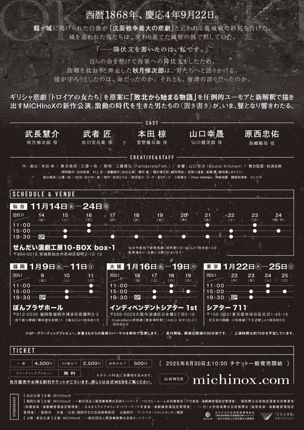 | お申込み | 劇団公式WEB:https://www.michinox.com/okigaki |