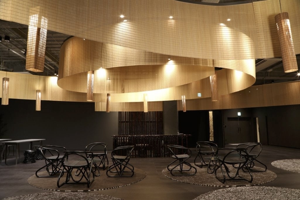 例えば、窓装飾、間仕切り、建具、照明、家具——あらゆる用途に展開する竹・ラタンの世界を、あらゆる角度から体験できます。特に「透け感」や「風の通り」のような五感に訴える質感について、「すだれラボ」と称する実験スペースで、照度・色温度を調整しながら確認できるのも興味深いポイント。