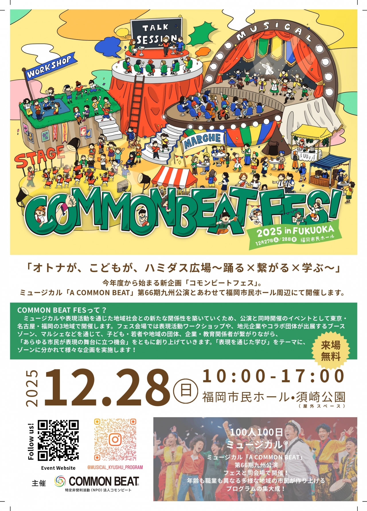 ミュージカルや表現活動を通じた地域社会との新たな関係性を築いていくため、公演と同時開催のイベントとして「COMMON BEAT FES(コモンビートフェス)」を東京・名古屋・福岡の3地域で開催します。