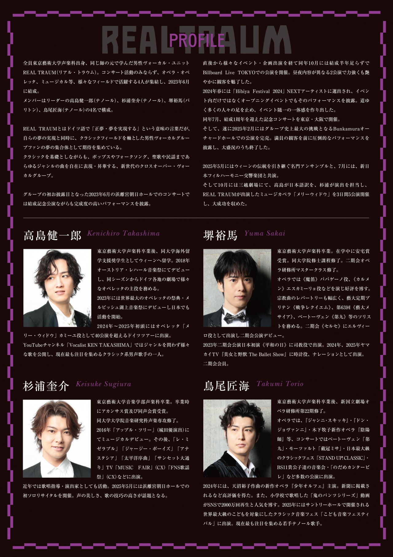| お申込み | イープラス https://eplus.jp/real-traum2026/ ローソンチケット https://l-tike.com/realtraum/ チケットぴあ https://w.pia.jp/t/realtraum2026-f/ |