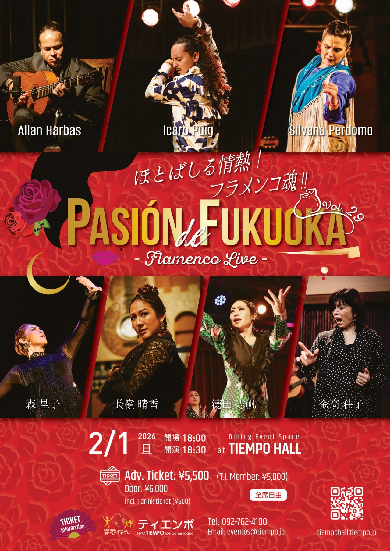 当団体のフラメンコ講師として来日中の男性舞踊家イカロ・プイグ、来日したばかりのシルバナ・ペルドモが、ギタリスト アラン・アルバス、国内外で活躍する舞踊家とともにおおくりするフラメンコライブ「パシオン・デ・福岡」 第29弾。
