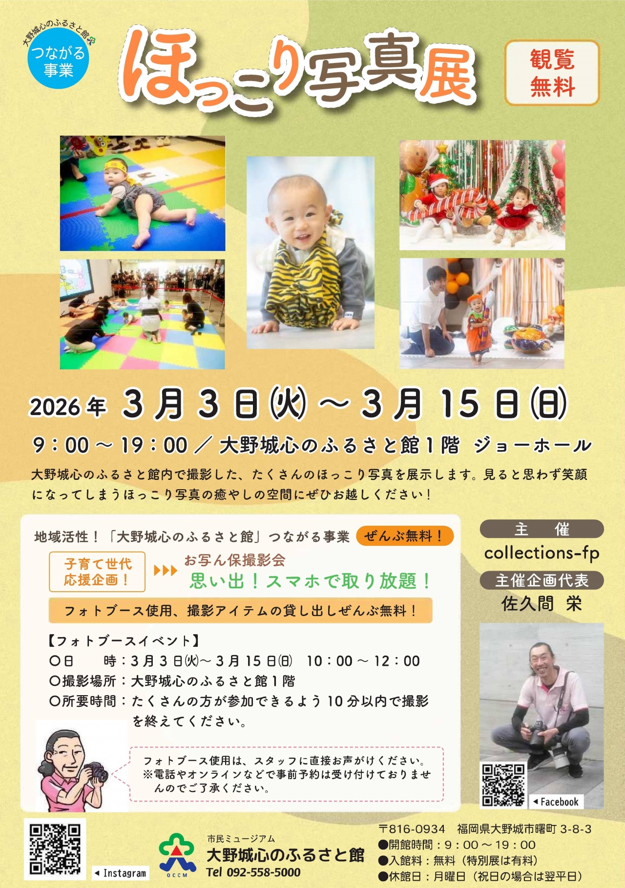大野城心のふるさと館内で撮影した、たくさんのほっこり写真を展示します。見ると思わず笑顔になってしまうほっこり写真の癒しの空間にぜひお越しください!