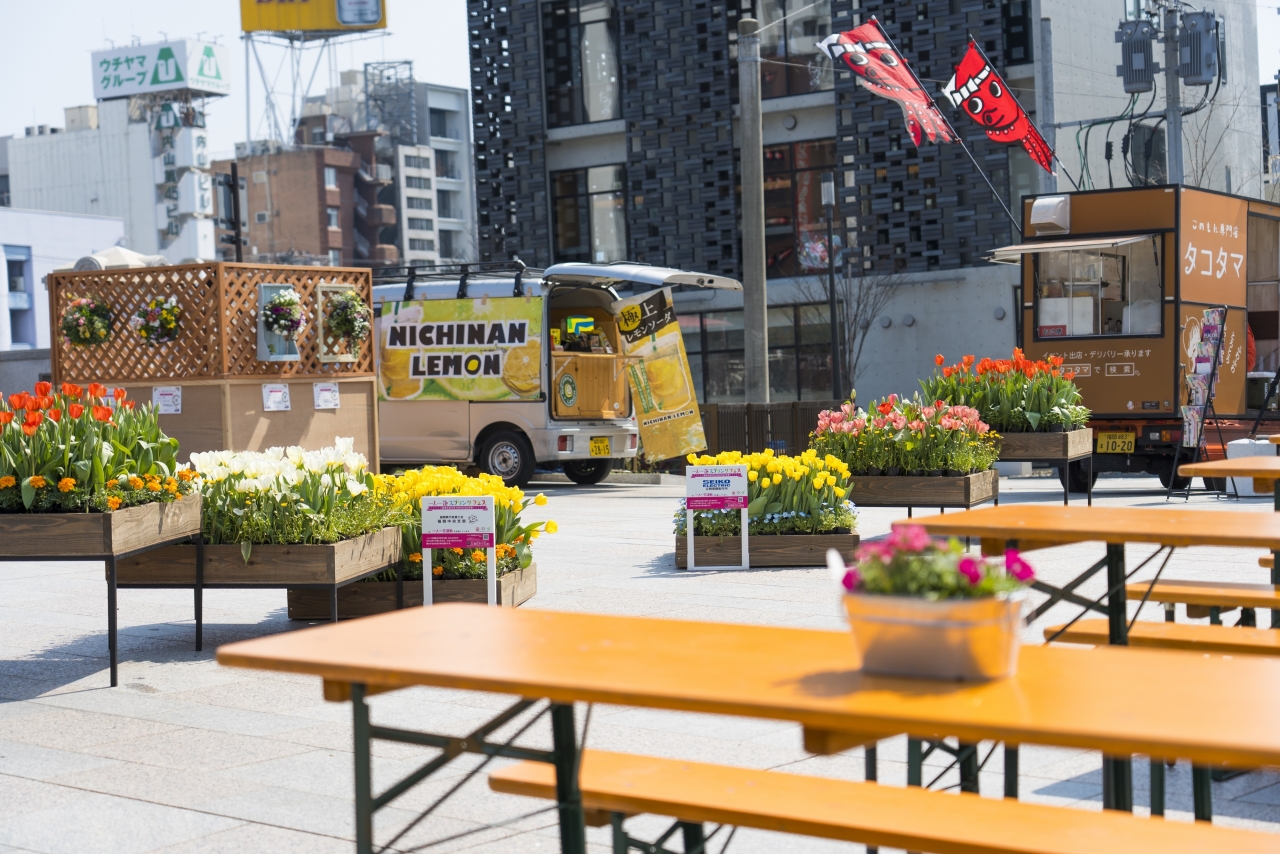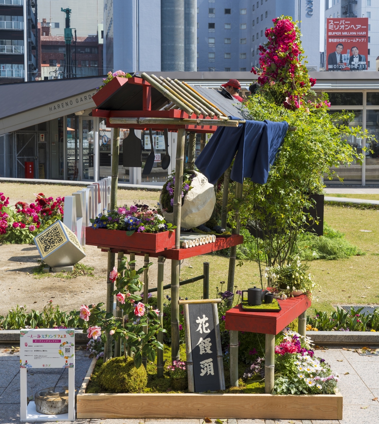 メイン会場である県営天神中央公園 貴賓館前広場では、市⺠や企業や学⽣による花壇作品・フラワーオブジェの展⽰やキッチンカー、園芸店などの出店により、天神の真ん中に花いっぱいのくつろげる空間を演出します。春の暖かい陽射しの中、花とみどりに囲まれた空間をお楽しみください。