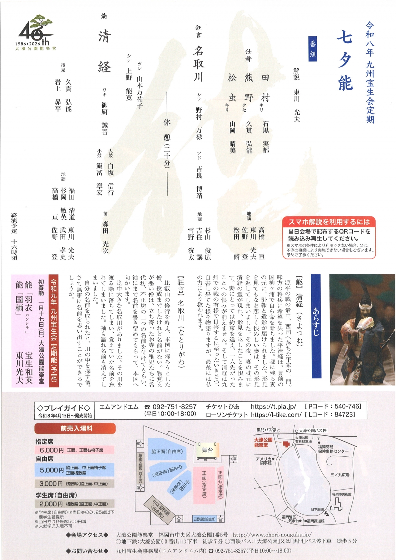 九州宝生会事務局(エムアンドエム内)(平日10:00-18:00) TEL 092-751-8257 |