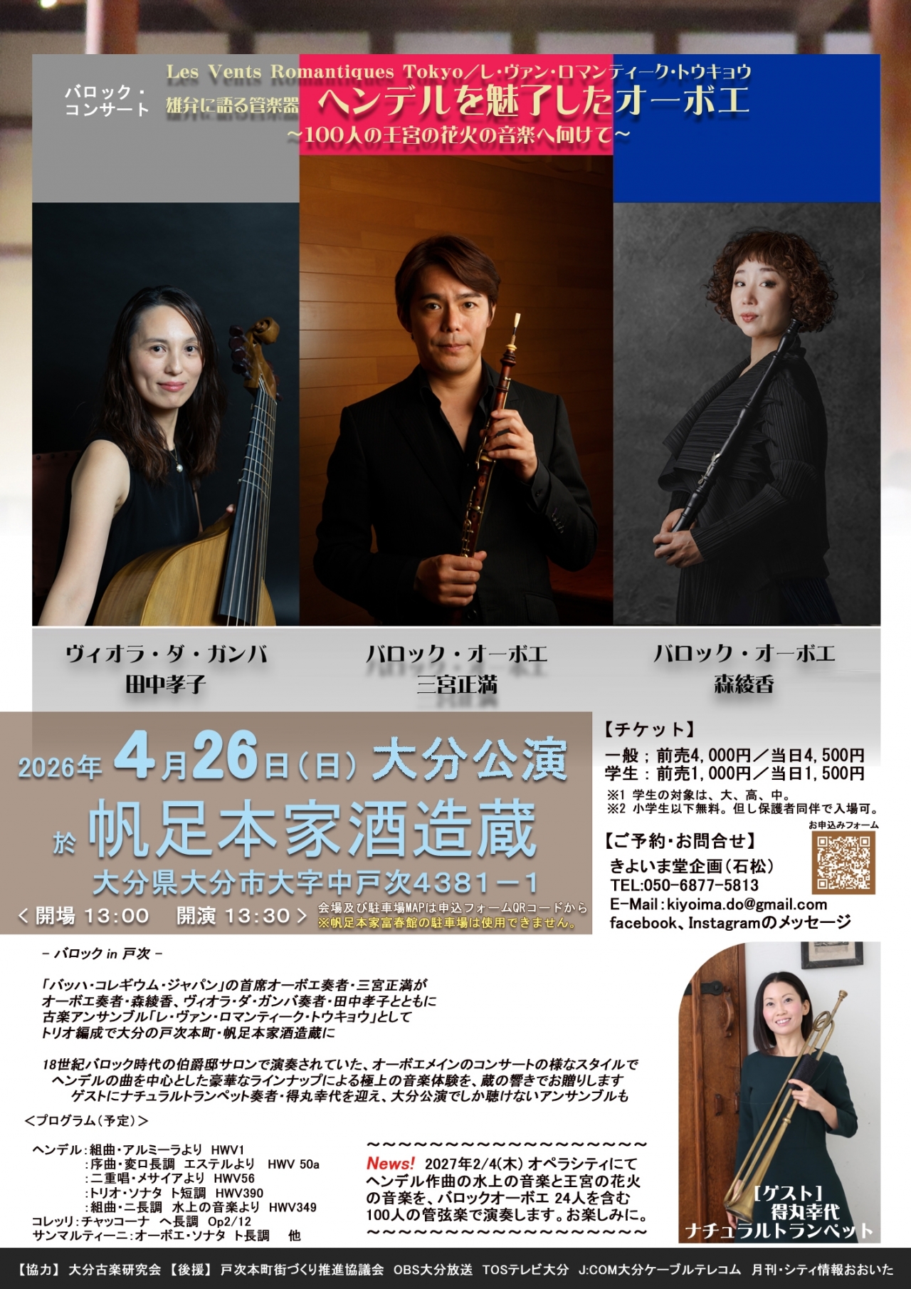 バロック・コンサート大分公演 雄弁に語る管楽器 ヘンデルを魅了したオーボエ