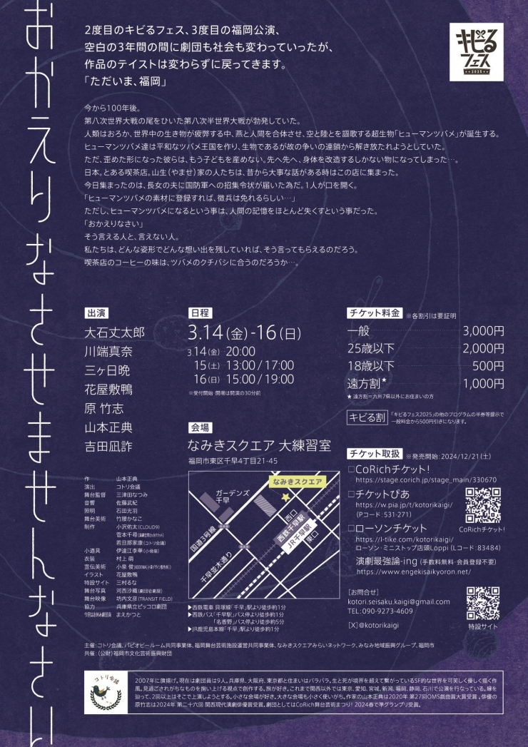| お申込み | 当日精算:CoRich!チケットhttps://stage.corich.jp/stage/353889 事前精算:チケットぴあ(Pコード 531-271) ローソンチケット (Lコード 83484) |