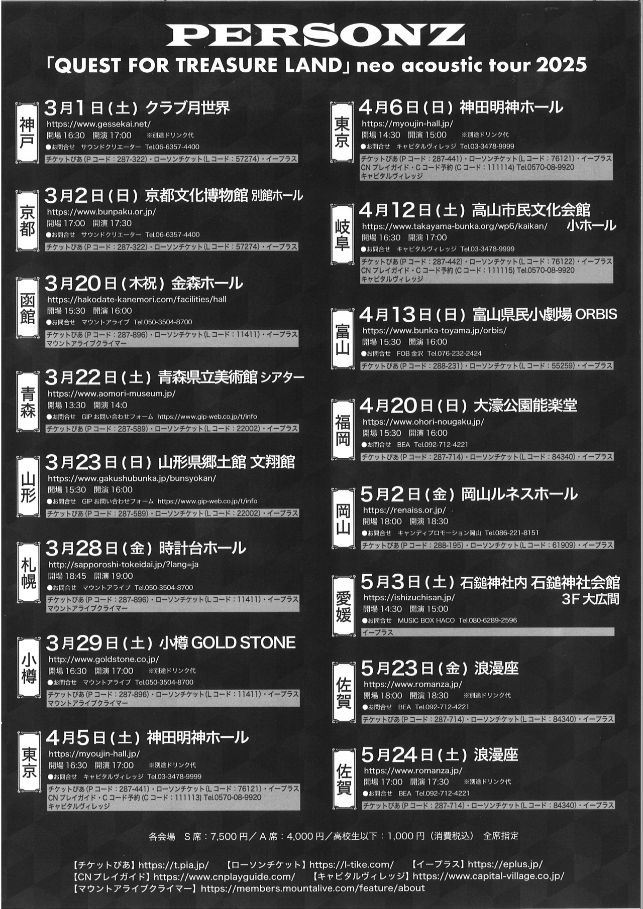 PERSONZ 「QUEST FOR TREASURE LAND」neo acoustic tour2025