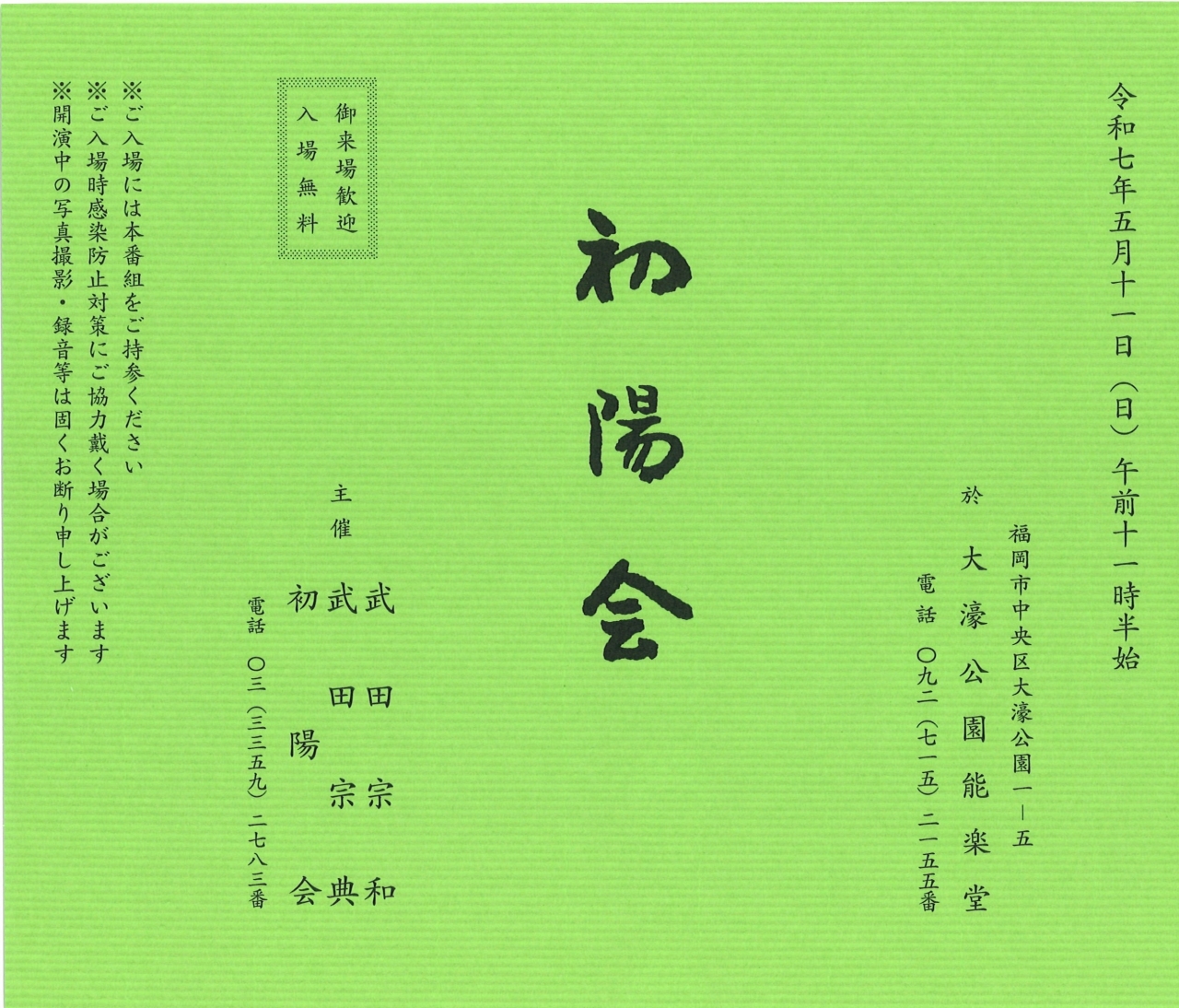 | 会場 | 大濠公園能楽堂 https://www.ohori-nougaku.jp/ 〒810-0051 福岡県福岡市中央区大濠公園1番5号 福岡市地下鉄空港線「大濠公園駅」3番出口より徒歩8分 西鉄バス「大濠公園」バス停より徒歩5分 ※Googleマップの仕様により場所名が異なって表示される可能性があります |