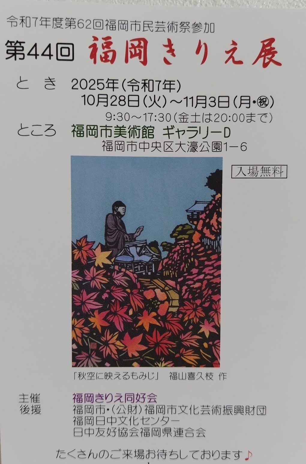 福岡きりえ同好会(日中文化センター内) TEL 092-751-9754 |