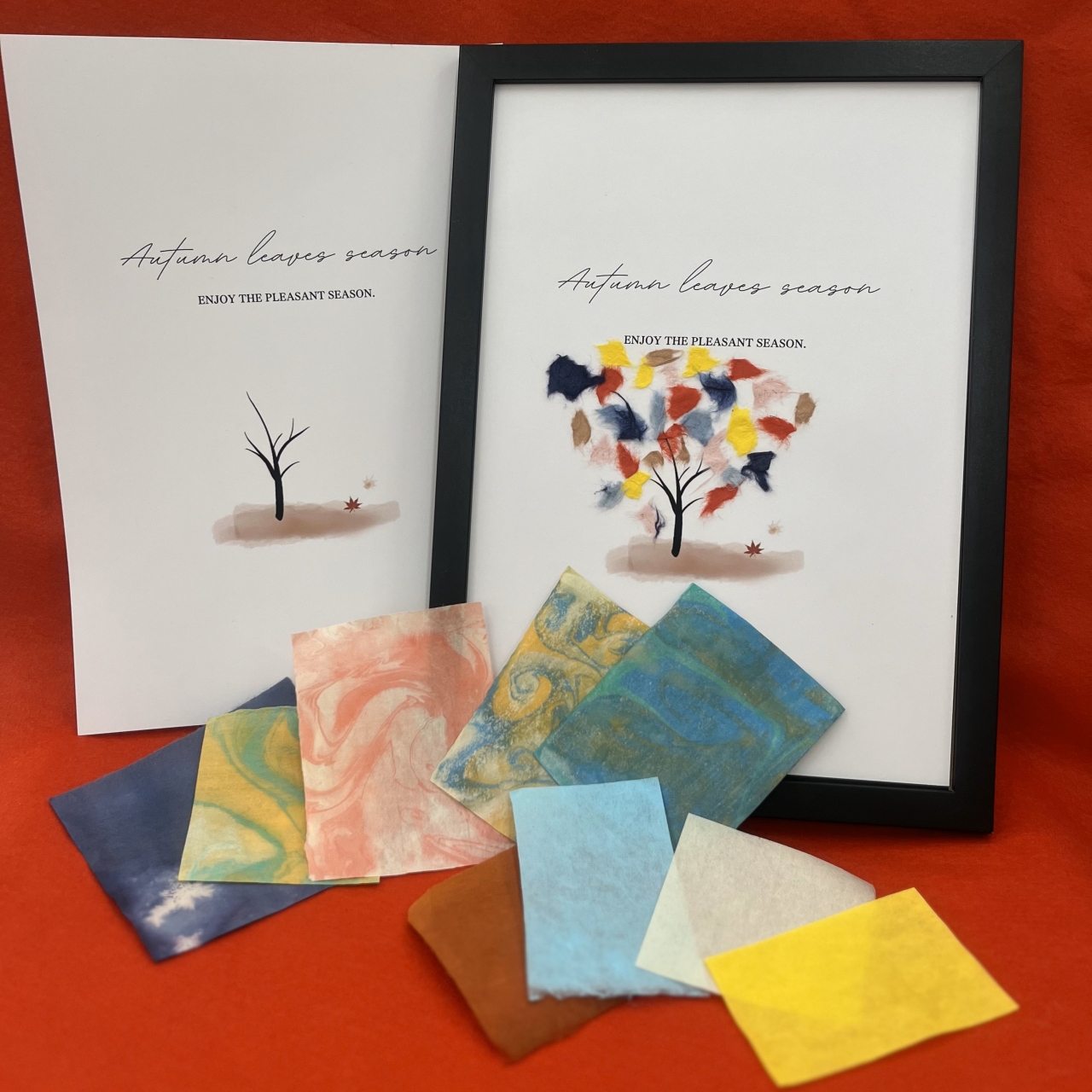 九州で最も古い歴史と伝統のある八女手漉和紙。和紙をボードに張り付け“水切り”という手法でカットし自由に色付けをしていただけます。