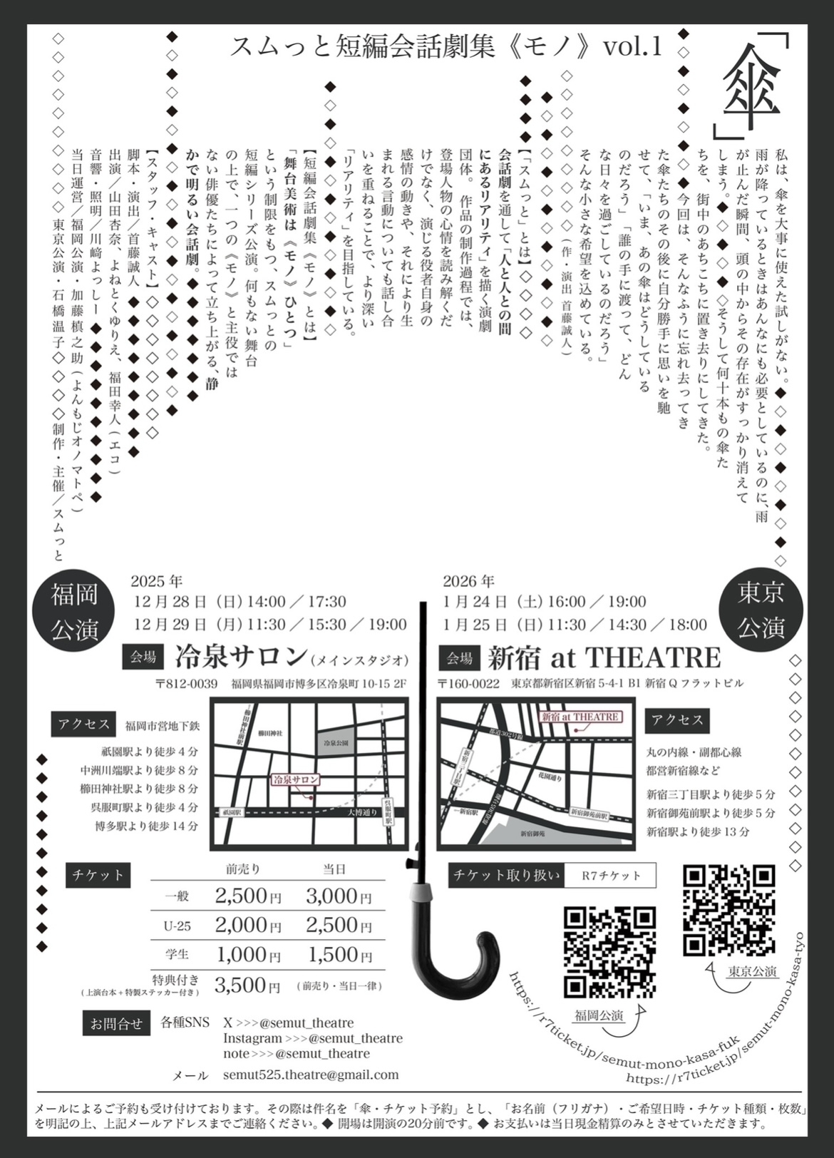 | お申込み | R7チケット: https://r7ticket.jp/semut-mono-kasa-fuk |