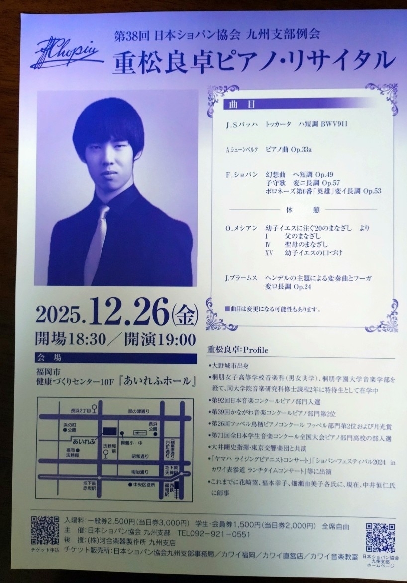 第38回ショパン協会九州支部例会「重松良卓ピアノリサイタル」
