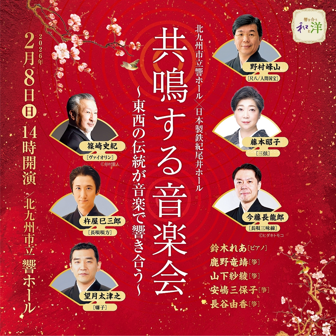日本製鉄紀尾井ホールとの共同主催公演。「紀尾井午後の音楽会」の特別版として『共鳴する音楽会 ~東西の伝統が音楽で響き合う~』と題し、西洋と東洋の名曲とともに、各界をリードする演奏家たちがコラボレーションします。