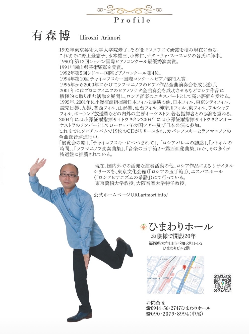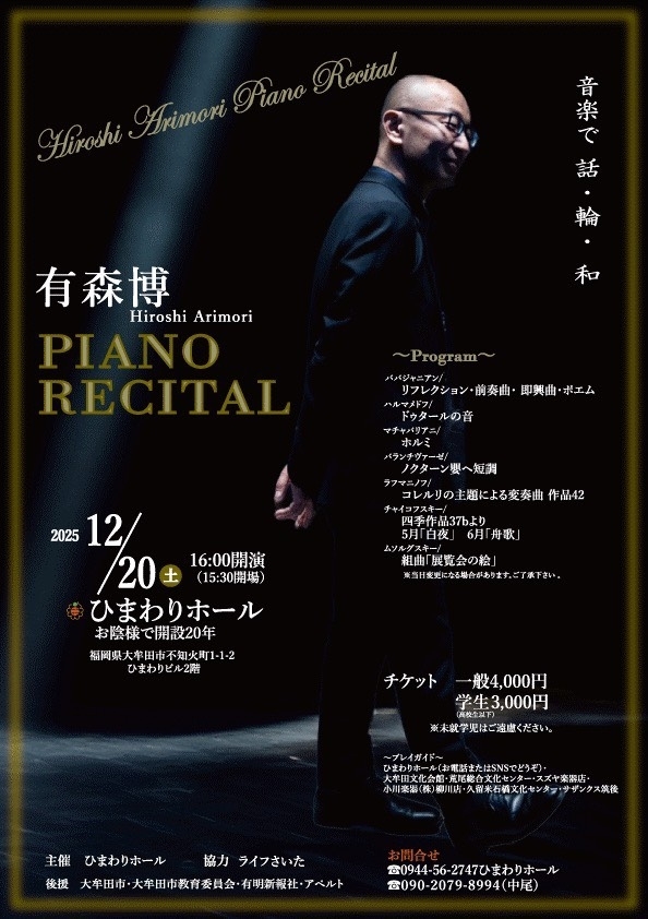 | お申込み | プレイガイド:大牟田文化会館、久留米石橋文化センター、サザンクス筑後ほか ひまわりホールは電話予約受付(お支払は公演当日) |