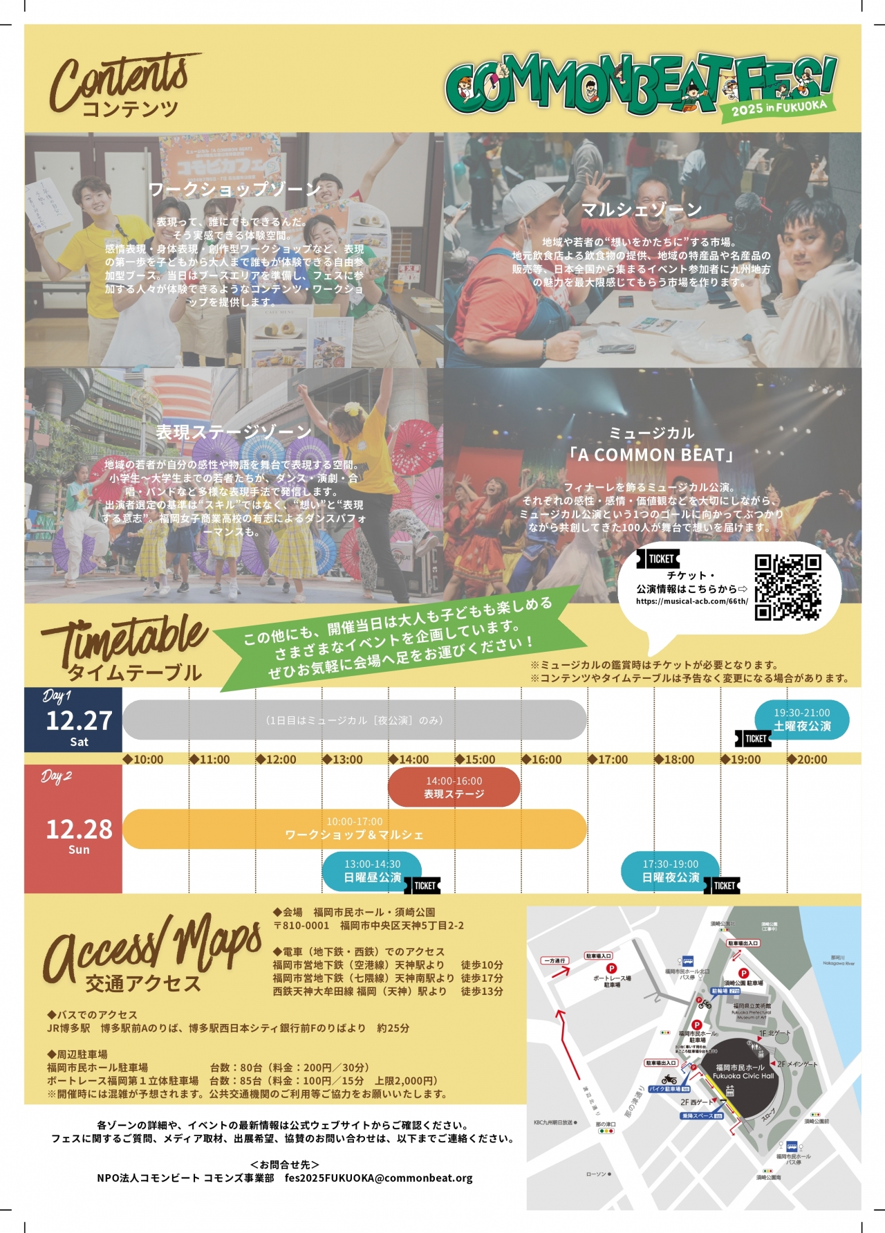 | お申込み | ◆※入場無料、入退場自由 ◆当日開催予定のミュージカル体験子どもワークショップ(無料)への申込はHPよりお申込みください。 |