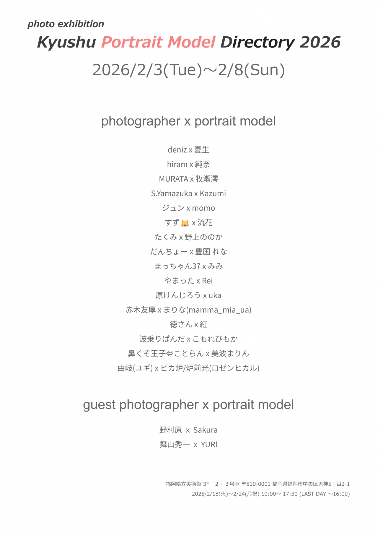 グループ展 「九州ポートレートモデル名鑑 写真展 2026」