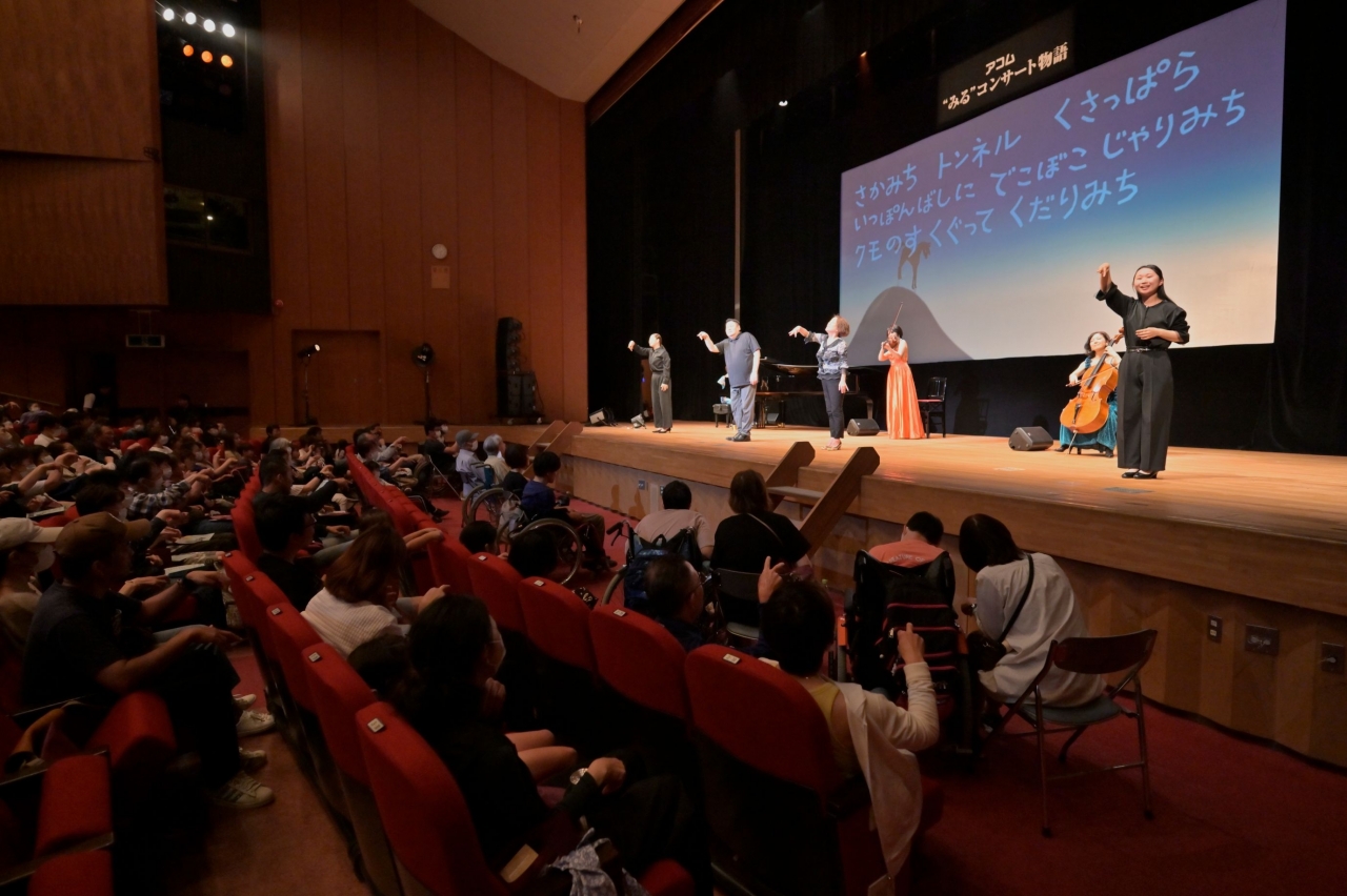 「“みる”コンサート物語」は、小さなお子さまからお年寄りまで、またハンディキャップのあるなしに関わらず、皆さまに楽しんでいただけるバリアフリーコンサートとして全国各地で開催しています。