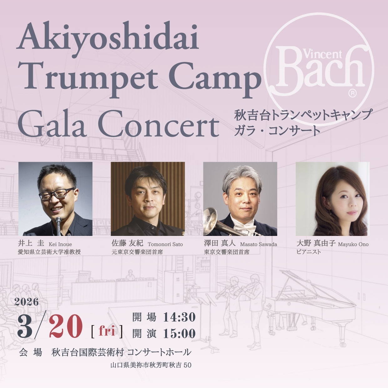 ソロ、アンサンブルと活躍の舞台を広げる、元東京交響楽団首席トランペット奏者の佐藤友紀を中心に、国内屈指の演奏家を講師に迎えて開催する秋吉台トランペットキャンプの講師陣によるコンサート。