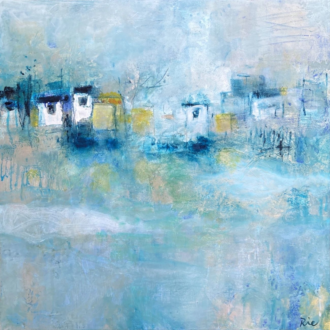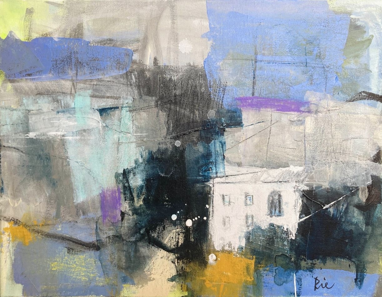 アクリルを重ねて生まれる、どこか詩的な配色の美しさ。そして、内側から溢れ出す高揚感を乗せた、走る筆跡。いつか失われてしまうかもしれない風景や、人の暮らしのささやかな息づかい。言葉を超えた高次元の感情が、一筋の線となって画面に響き合います。