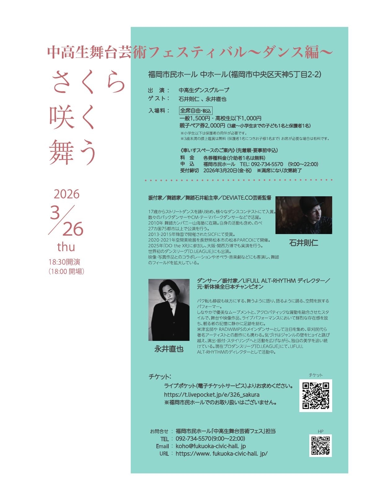 福岡市民ホール 「中高生舞台芸術フェスティバル」担当 TEL 092-734-5570 |