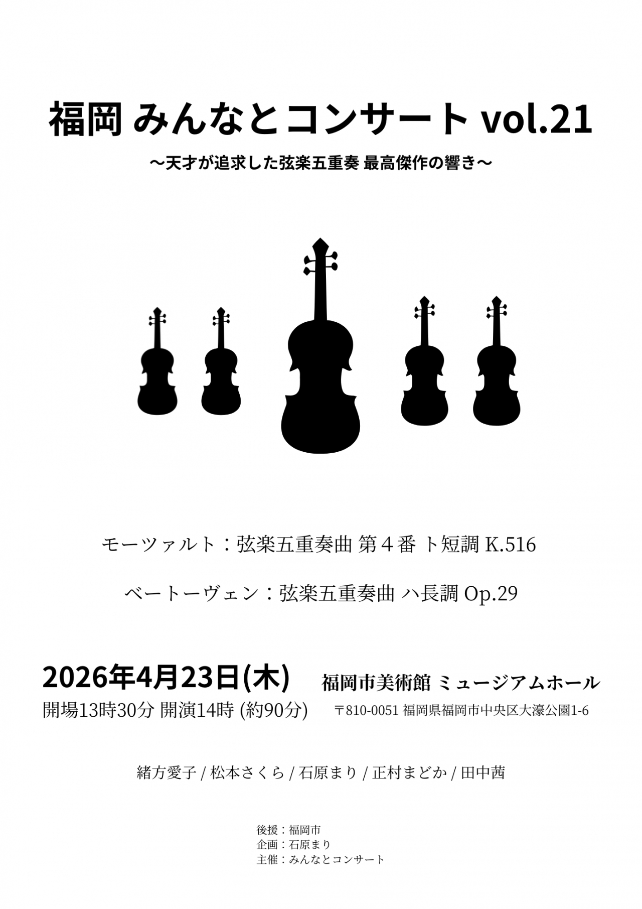 福岡 みんなとコンサート vol.21〜天才が追求した弦楽五重奏 最高傑作の響き〜