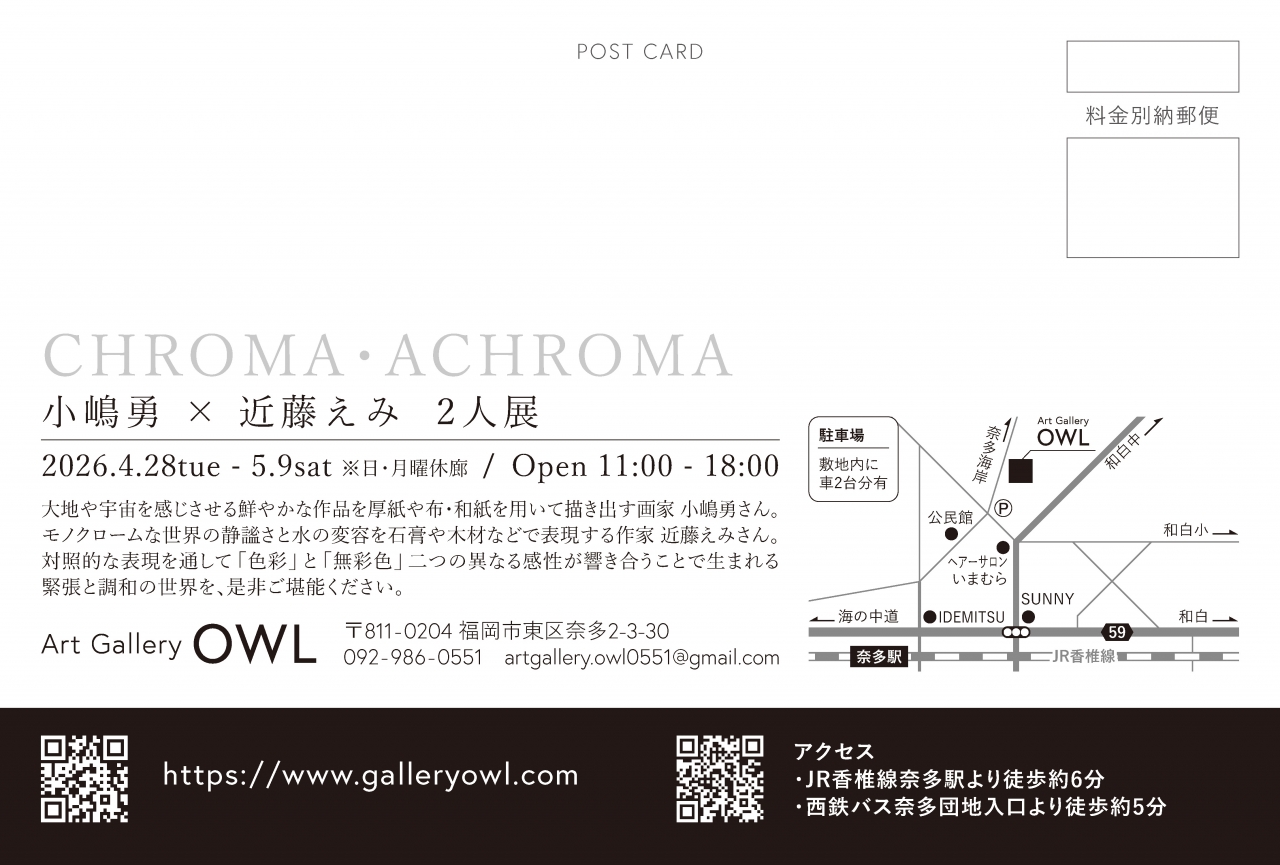 URL:https://www.galleryowl.com/exhibition/isamukojima-emikondo-twoartistsexhibition-chroma-achroma