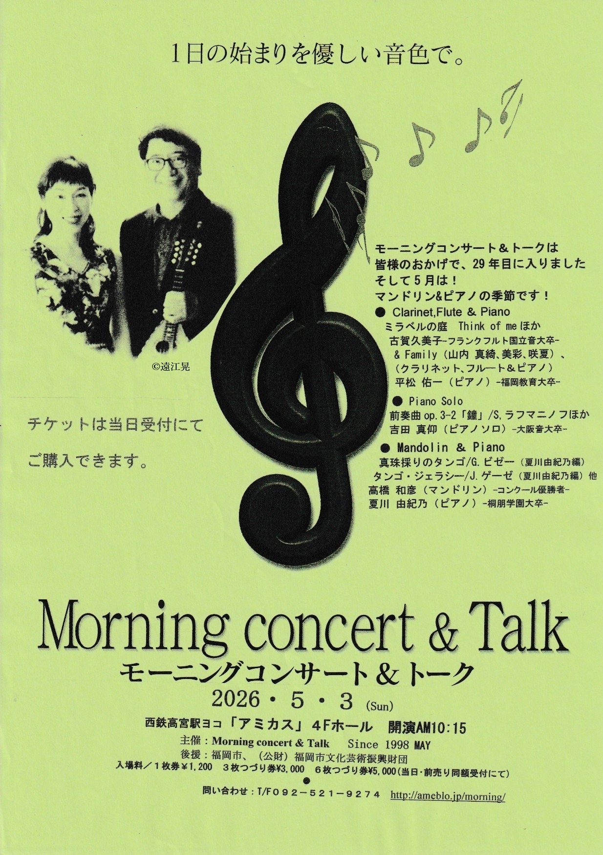 モーニングコンサート&トークはこの5月で開催29年目に入ります!