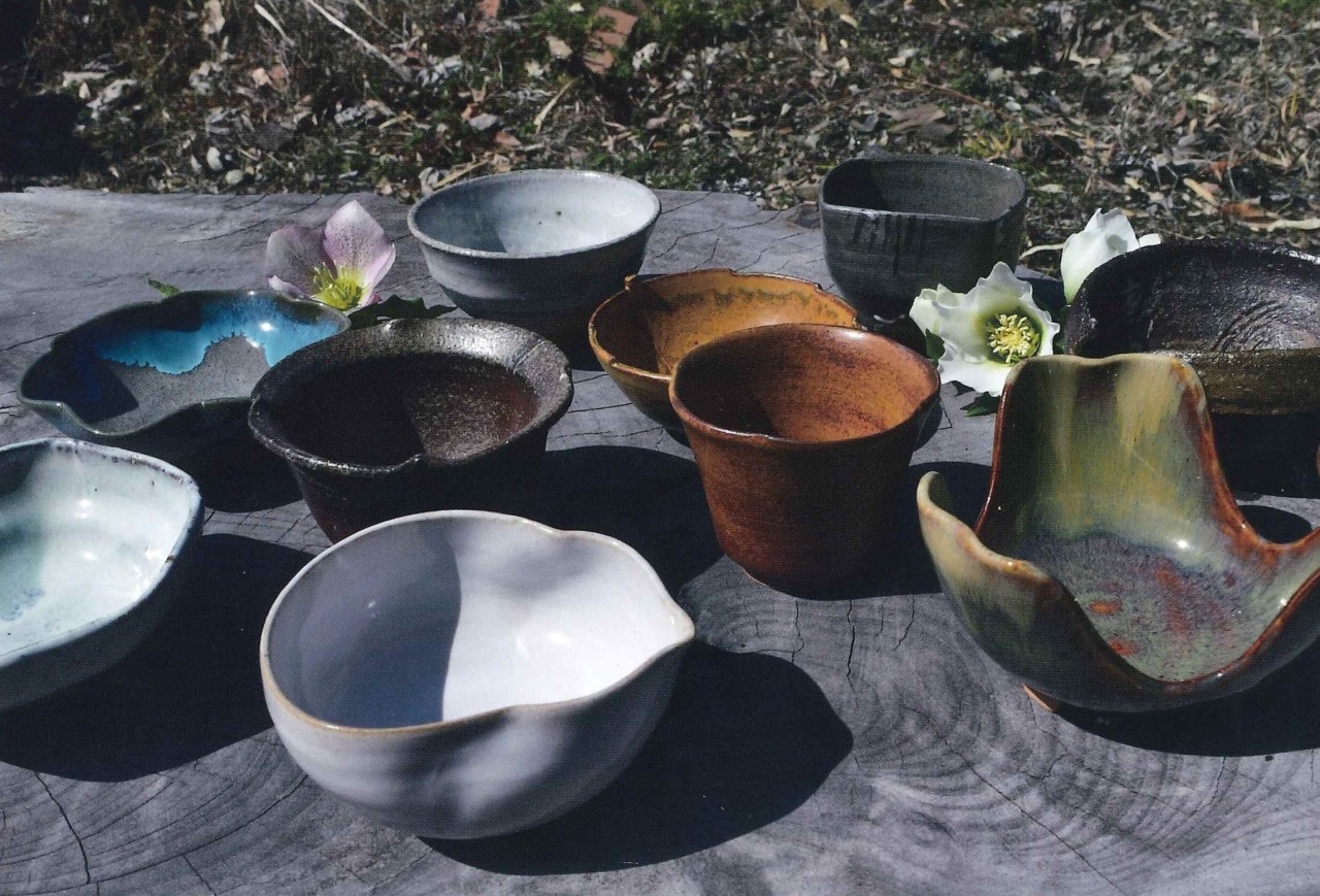 遠州高取焼は綺麗さびと言われ、軽く薄く、使いやすさを重視したこだわりが詰まっています。大きな窓からの自然光で店内はとても明るく、作品が美しく輝いています。年末になると、縁起物である干支の土鈴をつくられています。
